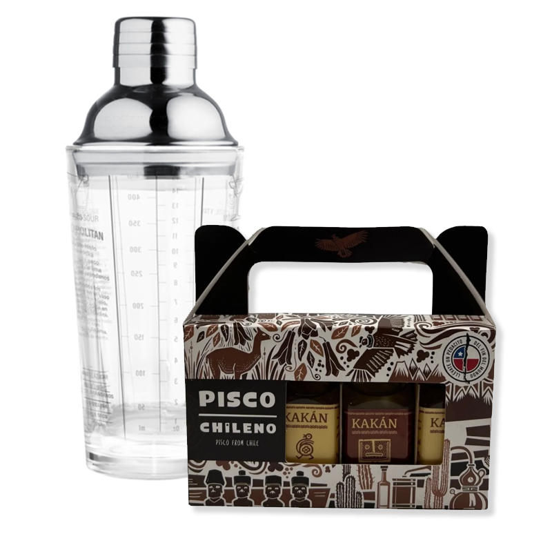 4 Piscos Kakán 50 ml c/u + Coctelera