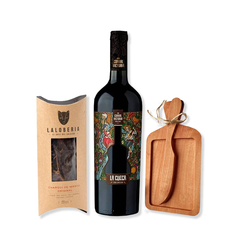 Vino "La Cueca" + Tabla Madera + Charqui La Lobería