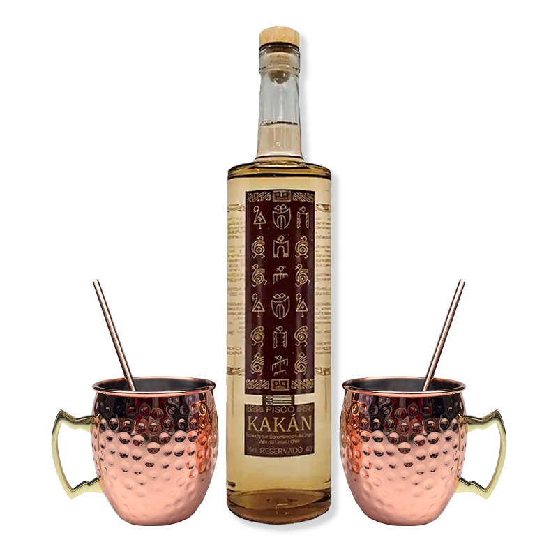 Pisco Kakán 750 ml + 2 Vasos Encobrizados 500 cc
