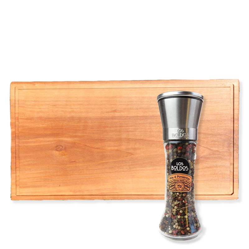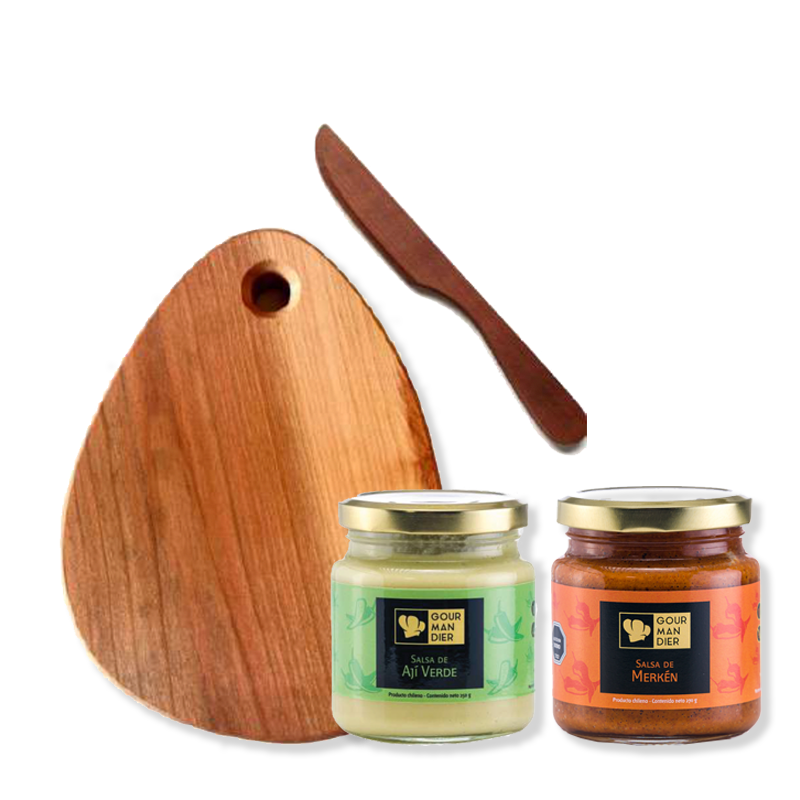 Tabla y Cuchillo Madera + Salsa Merkén + Salsa Ají